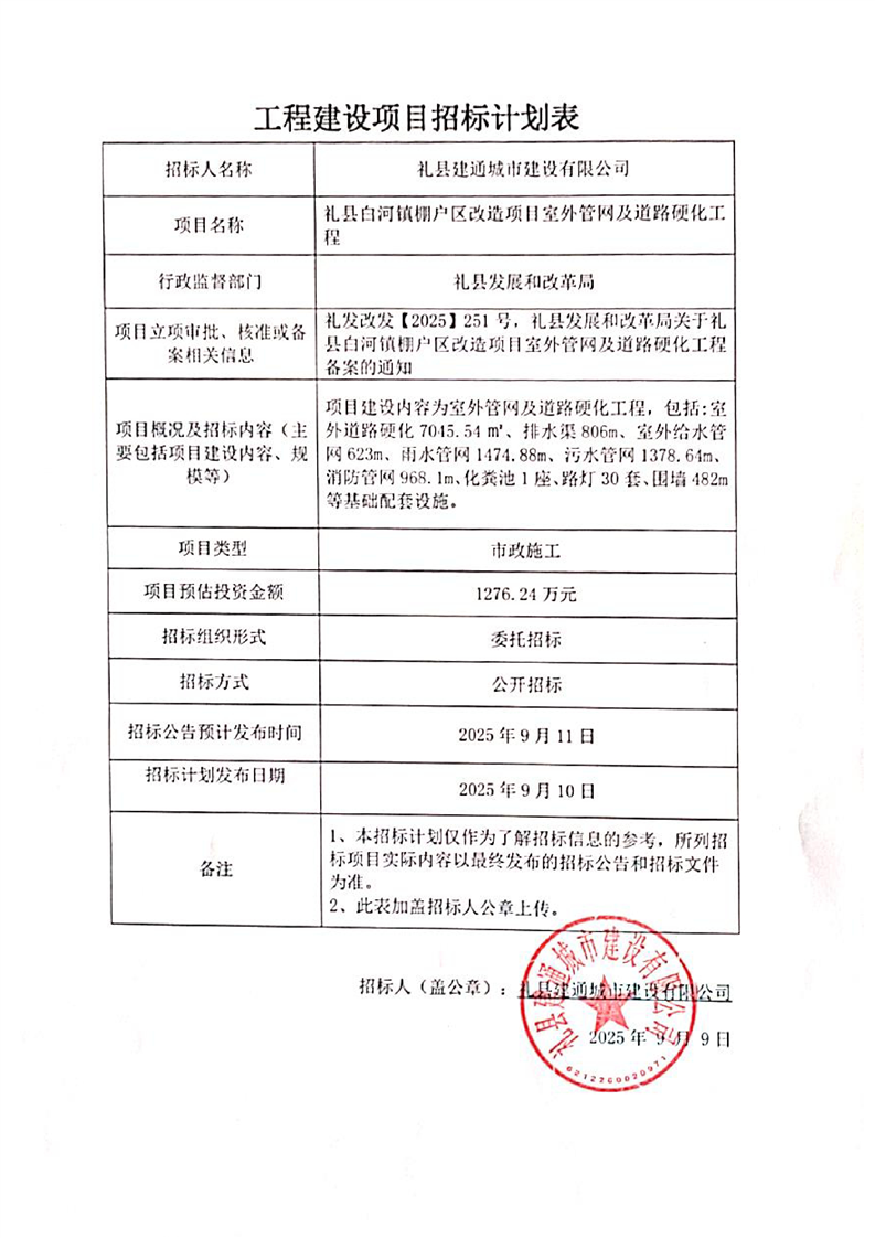 禮縣白河鎮(zhèn)棚戶區(qū)改造項目室外管網(wǎng)及道路硬化工程