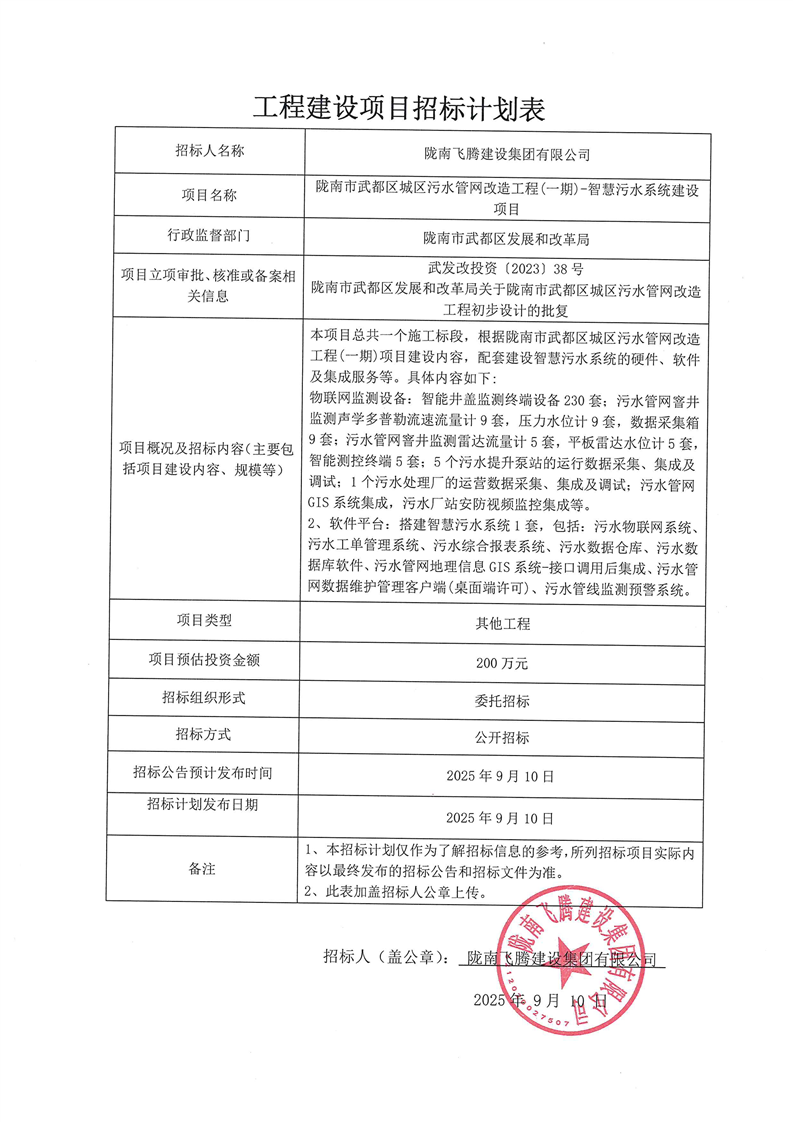 隴南市武都區(qū)城區(qū)污水管網改造工程(一期)-智慧污水系統(tǒng)建設項目