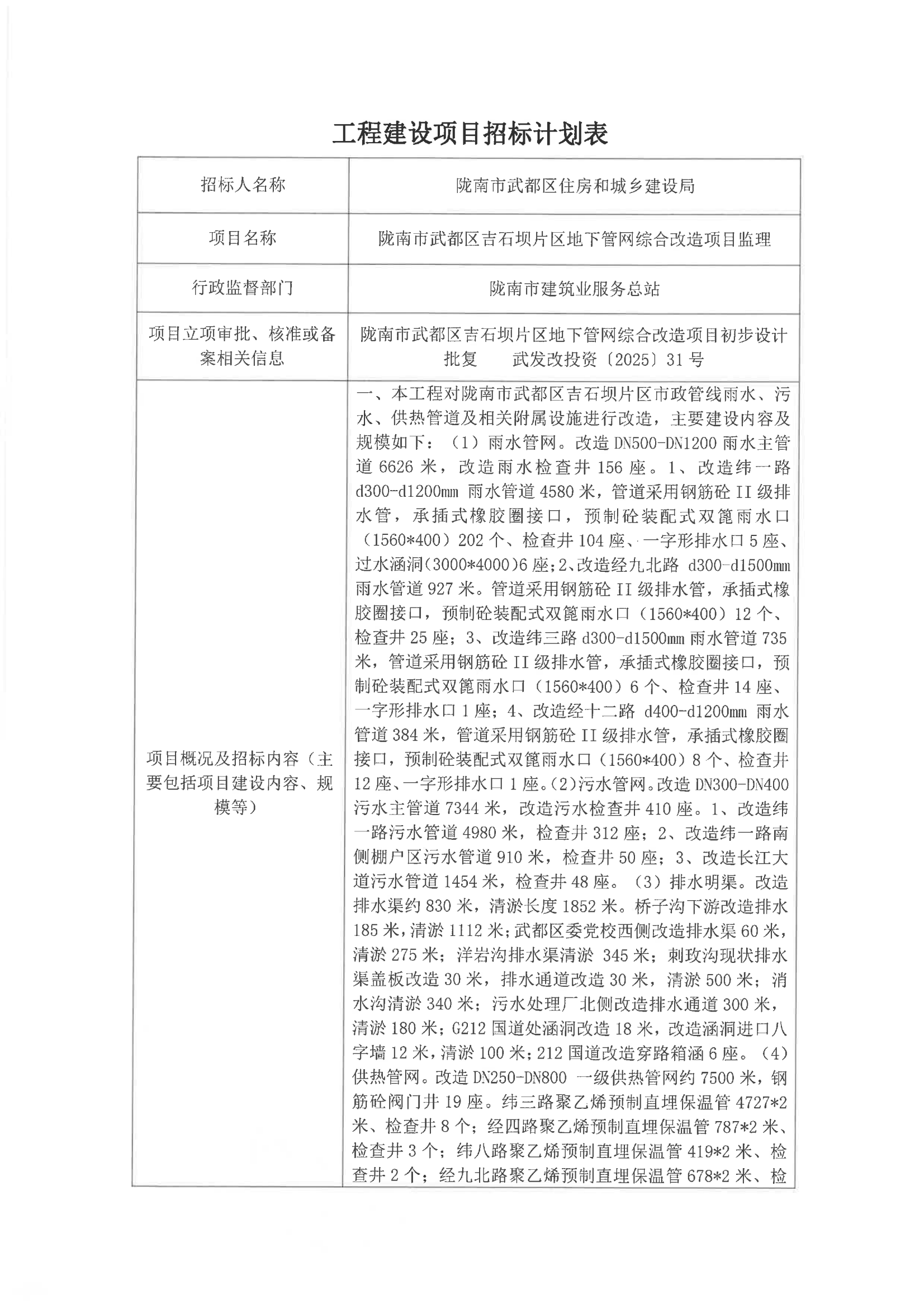 隴南市武都區(qū)吉石壩片區(qū)地下管網(wǎng)綜合改造項目監(jiān)理