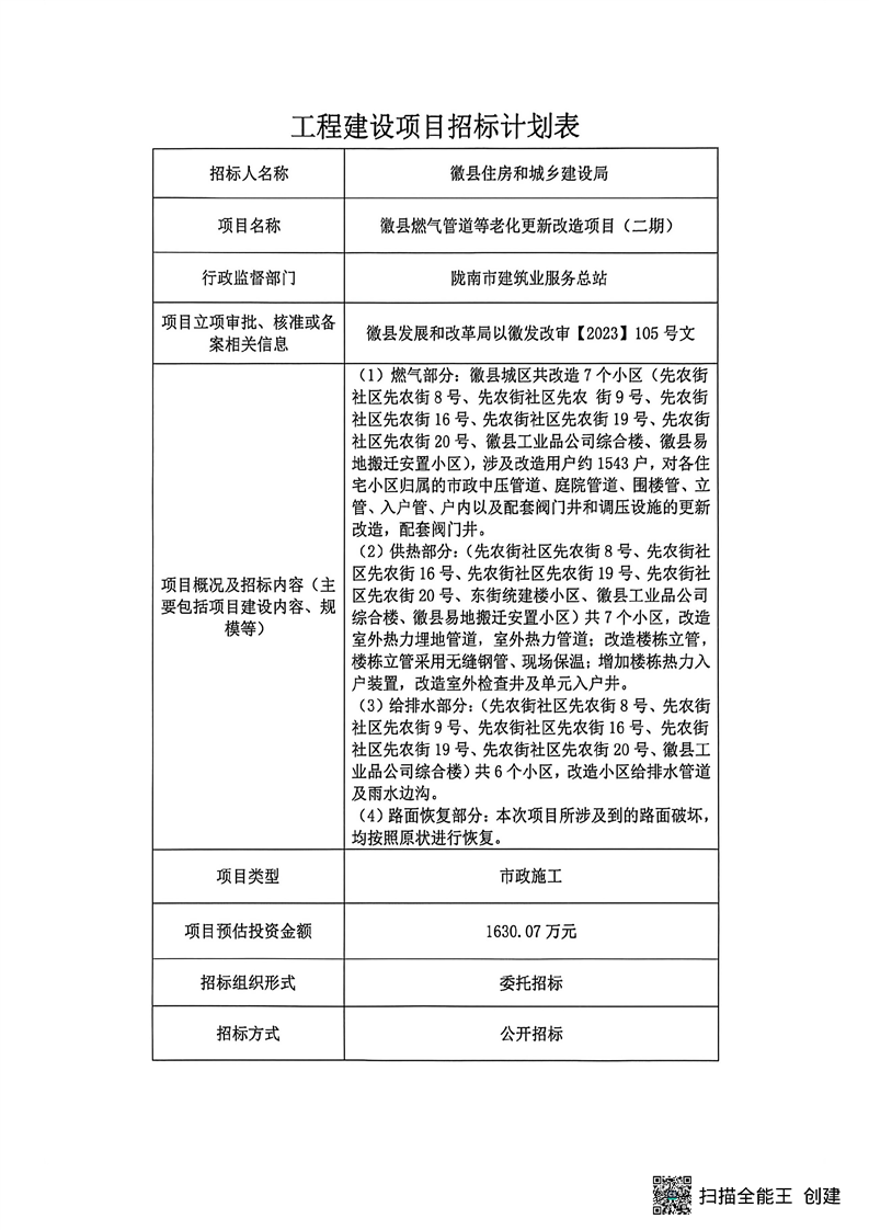 徽縣燃?xì)夤艿赖壤匣赂脑祉?xiàng)目(二期)