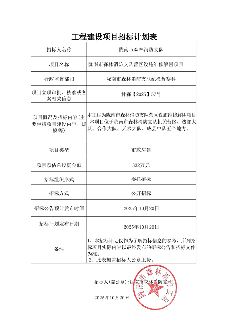 隴南市森林消防支隊營區(qū)設(shè)施維修解困項目