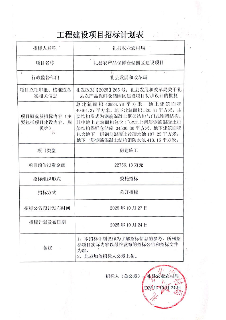 禮縣農(nóng)產(chǎn)品保鮮倉儲園區(qū)建設項目
