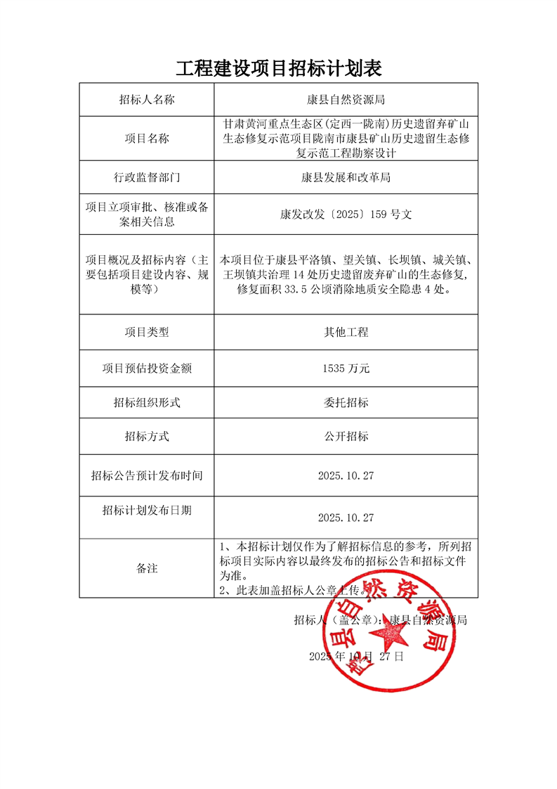 甘肅黃河重點生態(tài)區(qū)(定西一隴南)歷史遺留棄礦山生態(tài)修復(fù)示范項目隴南市康縣礦山歷史遺留生態(tài)修復(fù)示范工程勘察設(shè)計